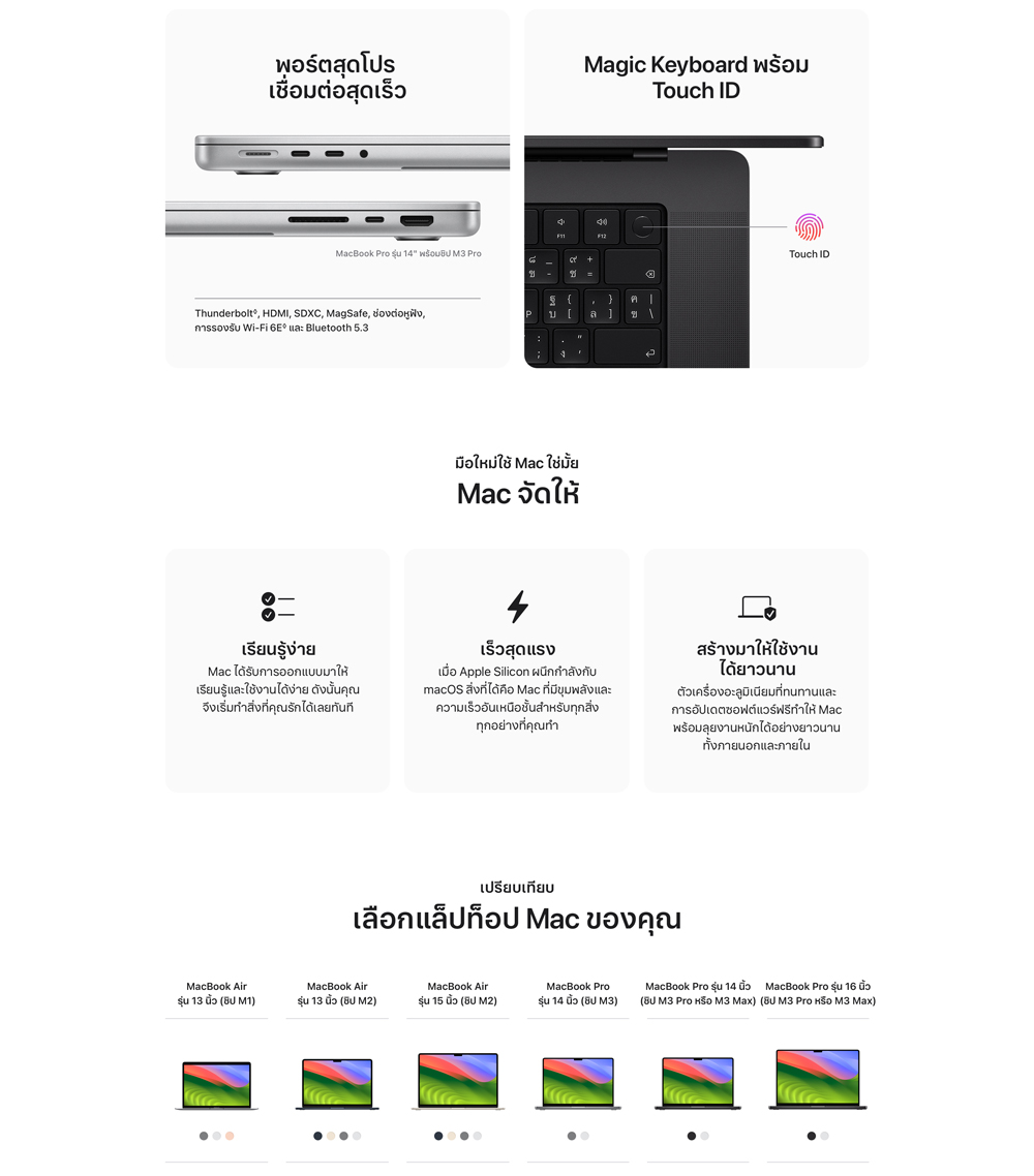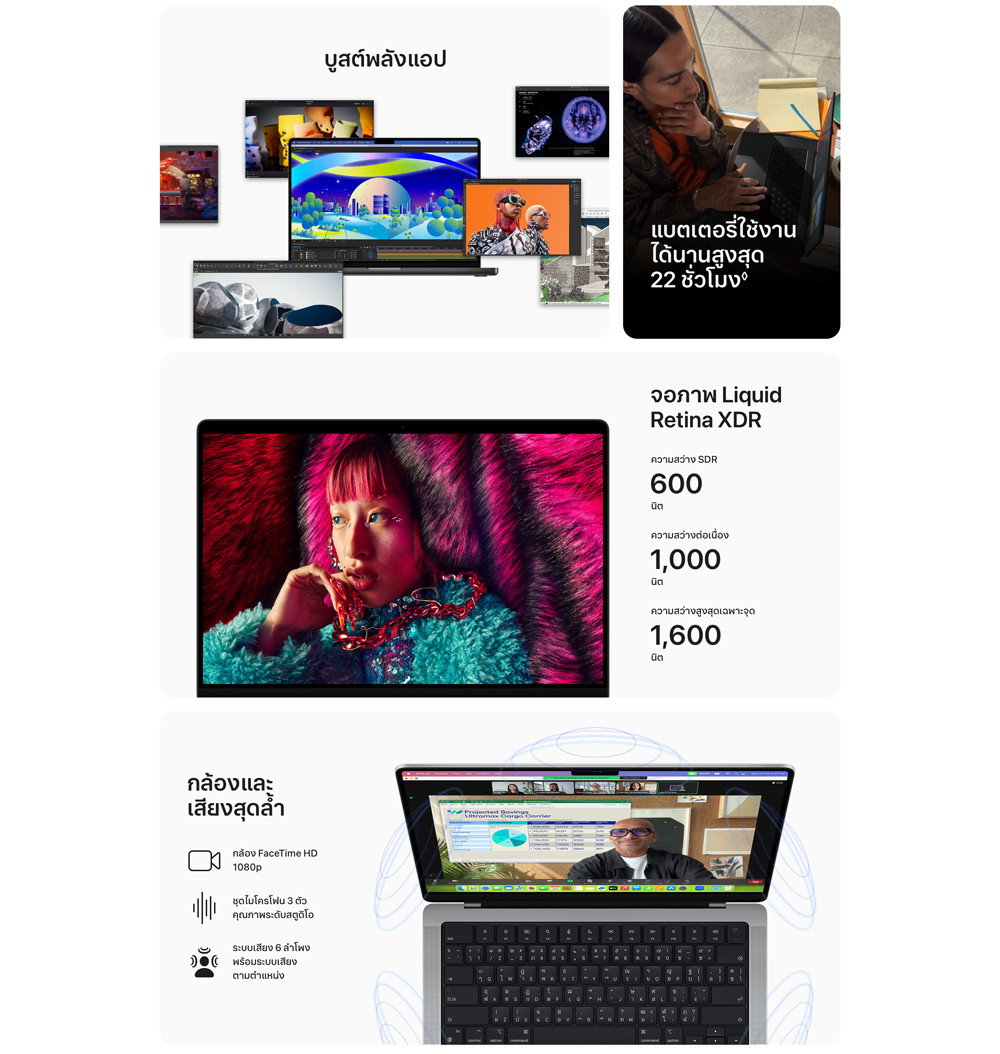 • Connection ports : Three Thunderbolt 4 (USB-C) ports