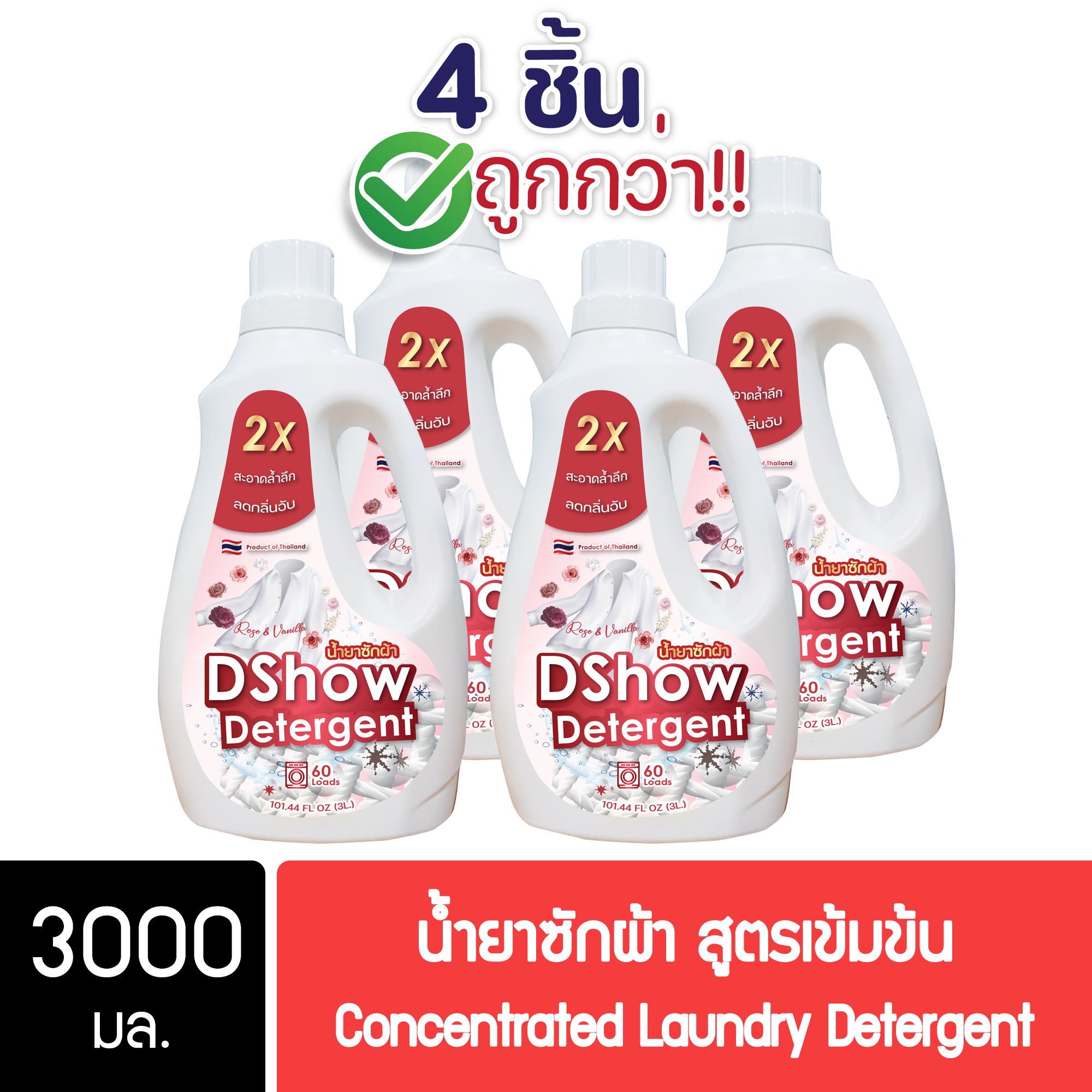 DShow น้ำยาซักผ้า สูตรเข้มข้น สีแดง สูตรลดกลิ่นอับ ตากในที่ร่ม ผงซักฟอกน้ำ Concentrated Laundry Detergent ขนาด 3000 มล. แพ็ค 4 ชิ้น