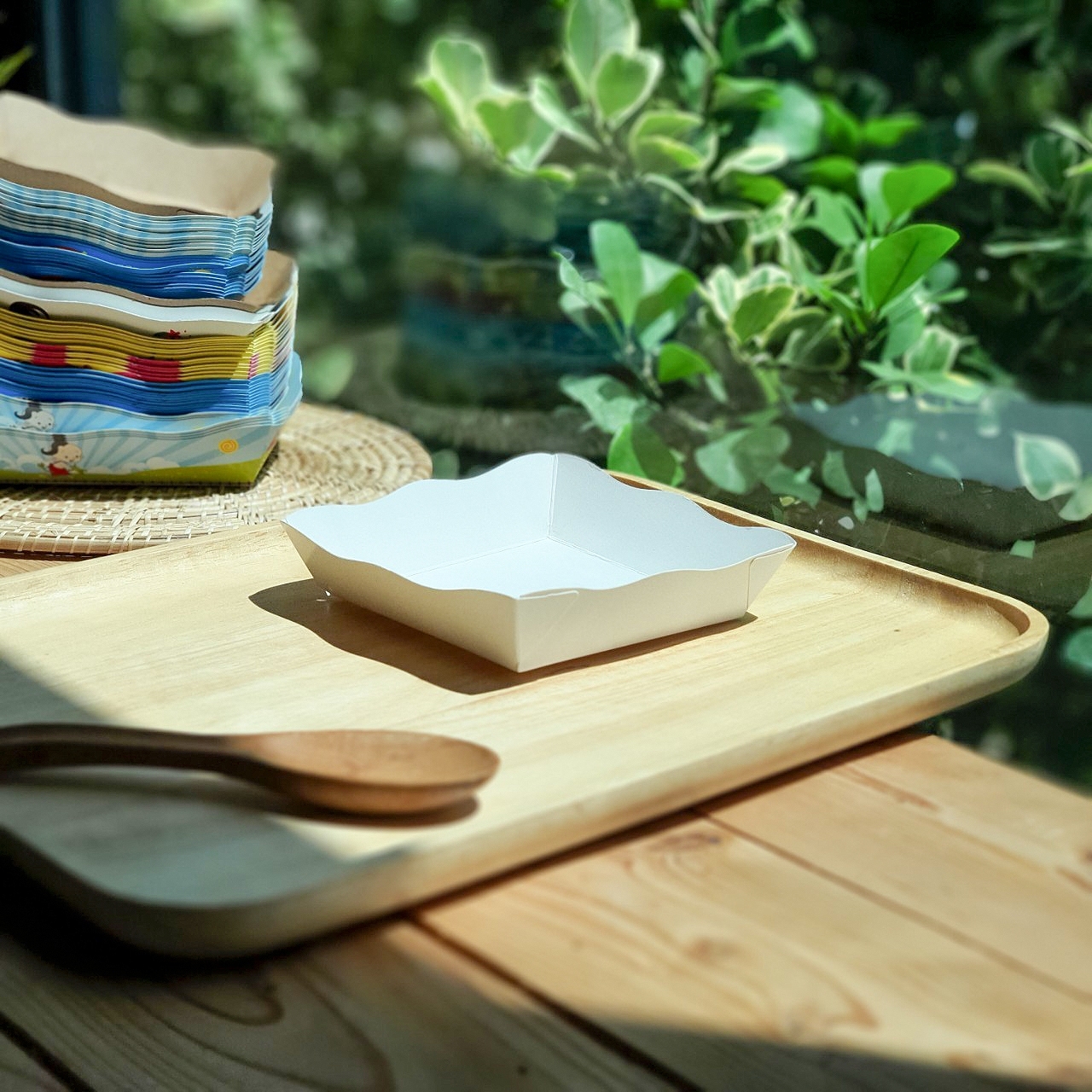 GoodBoxPack ถาดกระดาษขึ้นรูปขาว ไซส์ S 4 x 4 นิ้ว แพ็ค 50 ใบ