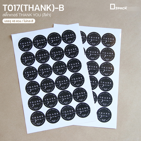 Depack ST017(THANK)-B สติ๊กเกอร์วงกลมพิมพ์ลาย สีดำ (1 แพ็ค/ 48 ดวง)/สติ๊กเกอร์ตกแต่ง คำพูด ข้อความขอบคุณ ติดกล่อง ติดซองขนม ติดกระปุก