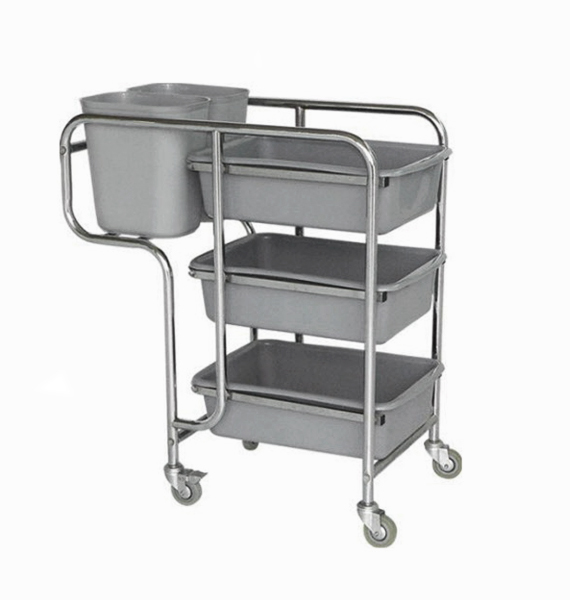 -ดีไซน์มาตรฐาน เรียบง่าย -มีถาด 3 ถาด + ถัง 2 ถัง -ทนทาน -ขนาด กว้าง800 x ลึก440 x สูง930มม -สี เทา -วัสดุ ตัวรถ: เหล็กชุบโครเมี่ยม -ถาด: PP (พอลีโพรไพลีน)