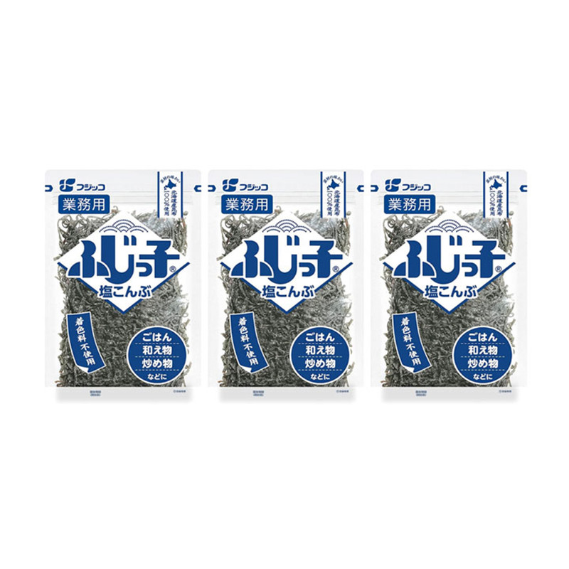 FUJICCO สาหร่ายทะเลเคลป์อบเกลือ ฟูจิกโกะ คอนบุ โคบุคุโร ปรุงกับซอสถั่วเหลือง สารสกัดสาหร่ายเคลป์ น้ำตาล และเครื่องปรุงรส ผลิตในประเทศญี่ปุ่น สำหรับครัวที่บ้าน มืออาชีพ และร้านอาหาร ชุดละ 3 ถุง ถุงละ 140 กรัม / FUJICCO Shiofuki Dried Konbu - Salted Kelp Seaweed, Soy Sauce, Sugar, Kelp Extract and Seasoning - Made in Japan - Professional and Home Cooking -Set of 3 Packs - 3 x 140 G.