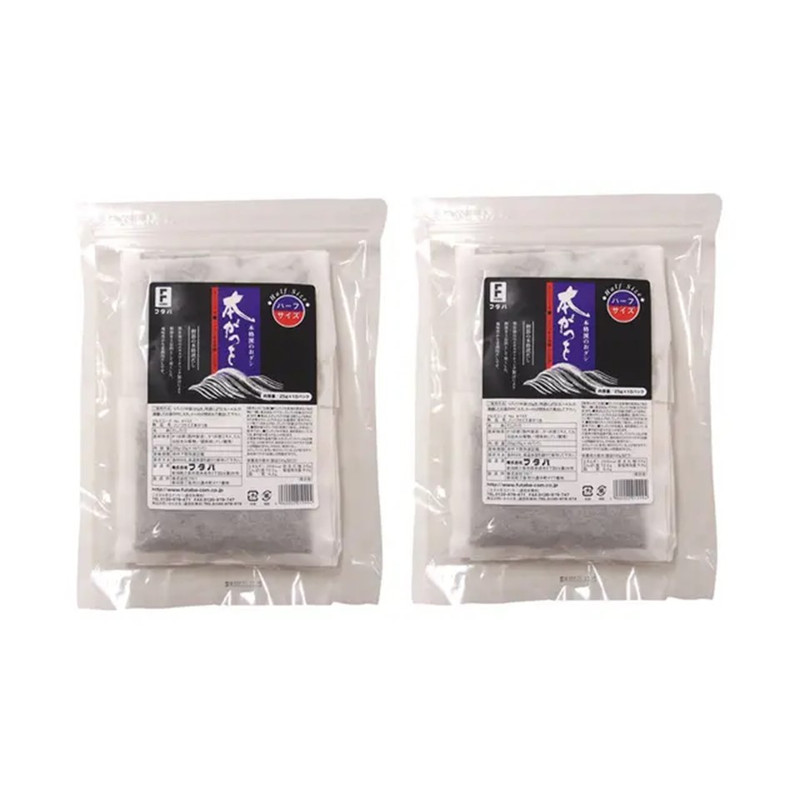 FUTABA ซุปปลาโบนิโตะชนิดผง ฟูตาบะ ฮอนกาสึโอะ ทำจากปลาโอญี่ปุ่นแห้ง สารสกัดปลาโอ และเครื่องปรุงรส ผลิตในประเทศญี่ปุ่น ชุดละ 10 ซอง ซองละ 25 กรัม ชุดละ 2 ถุง ถุงละ 250 กรัม / FUTABA Hongatsuo Dashi Pack with Dried Japanese Katsuo Bushi, Bonito Extract and Seasoning - Half Size - Tea Bag Type - Made in Japan - 10 Sachets x 25 G . - Set of 2 Packs - 2 x 250 G.