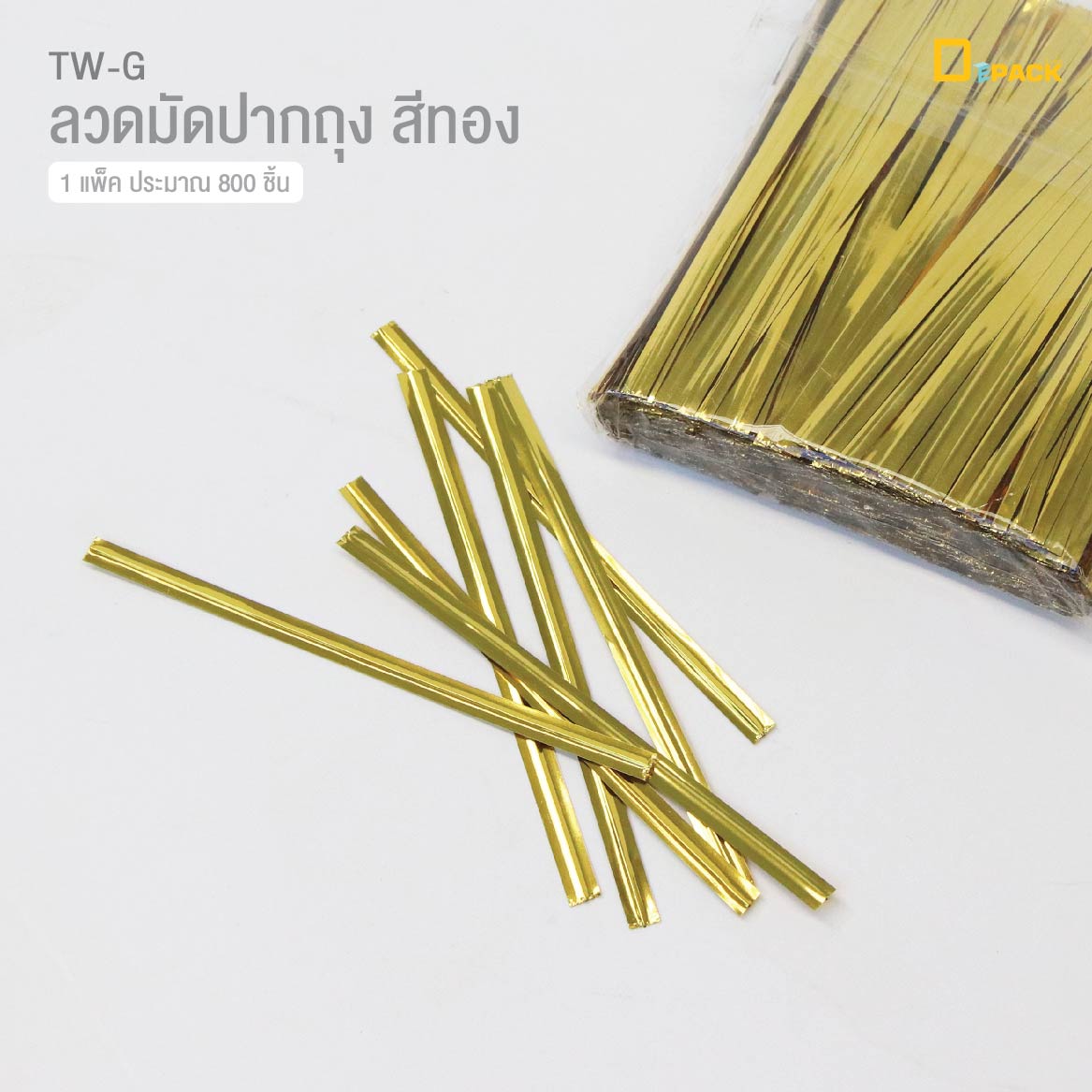 ดีแพ็ค ลวดมัดปากถุงขนม สีทอง TW-G (1 แพ็ค/ประมาณ 800 ชิ้น)
