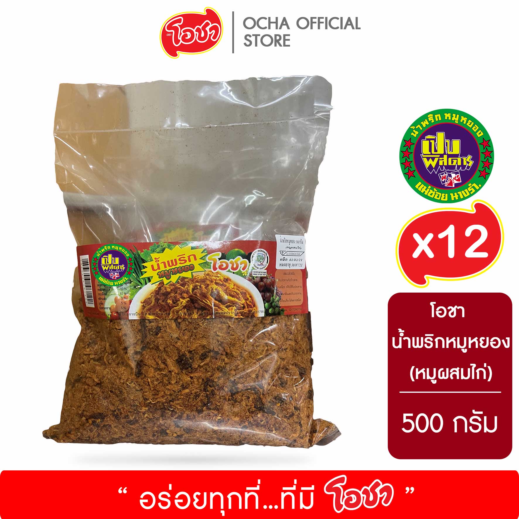โอชา น้ำพริกหมูหยอง 500 กรัม x 12 ถุง (4 แพ็ค)