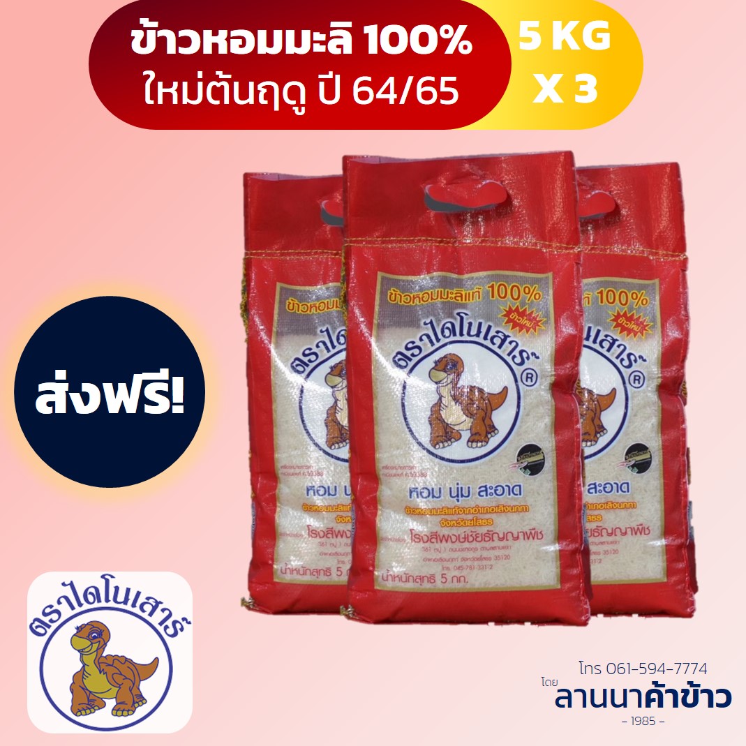 ข้าวไดโนเสาร์ ข้าวหอมมะลิ 5 KG. 3 ถุง