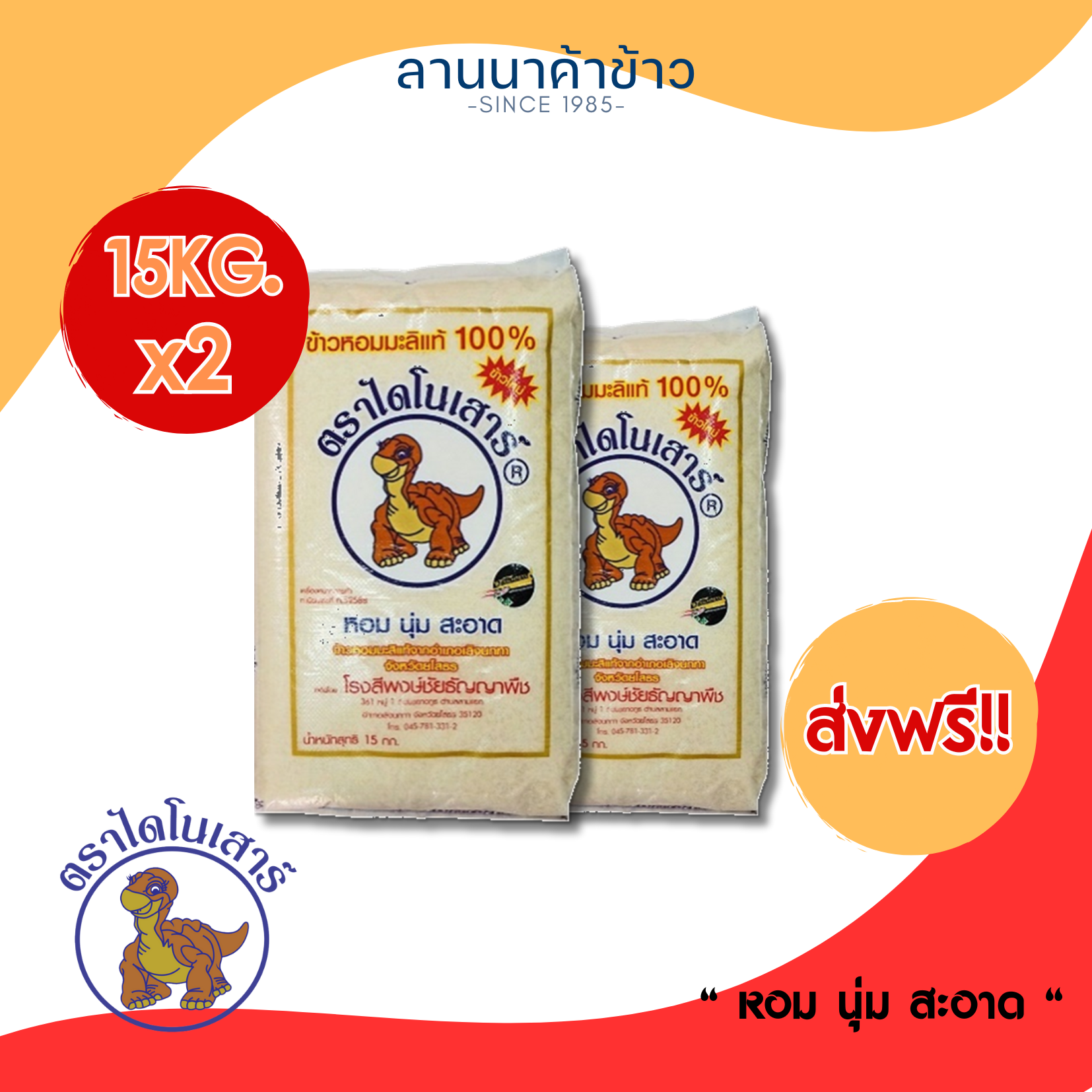 ข้าวไดโนเสาร์ ข้าวหอมมะลิเเท้100% 15 KG. 2 ถัง