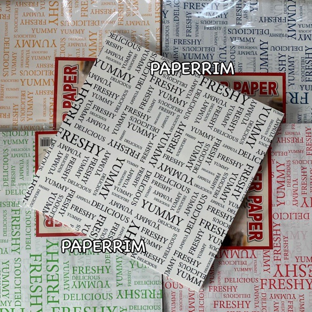 Paperrim กระดาษห่อขนม/เบอร์เกอร์ ลาย YUMMY สีดำ ขนาด 12 x 12 นิ้ว บรรจุ 100 ใบ/แพ็ค