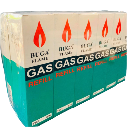 BUGA แก๊สกระป๋องชนิดเติมไฟแช็ค กระป๋องเล็ก 50 กรัม x 12 กระป๋อง ** ไม่สามารถออกใบกำกับภาษีได้ **