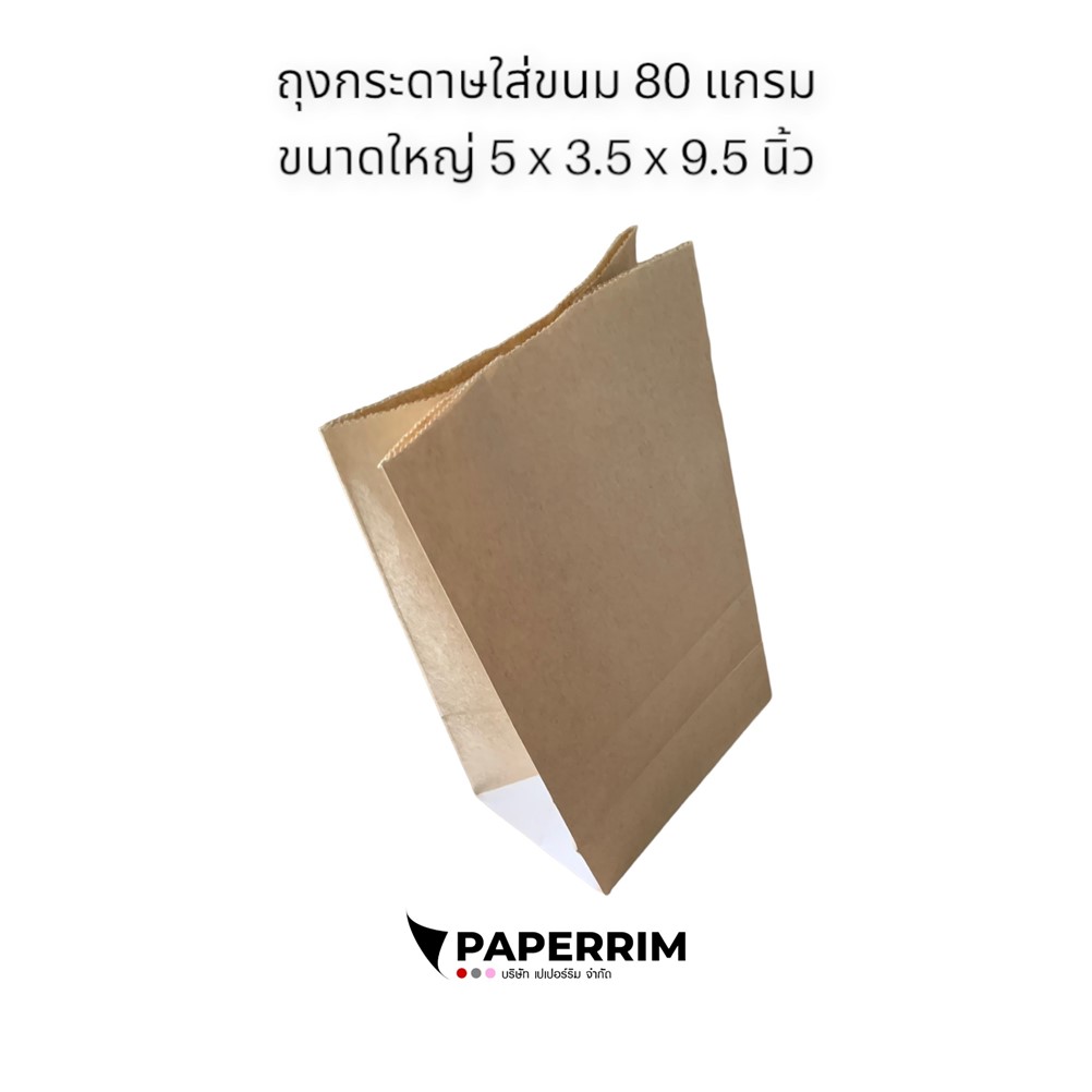 Paperrim ถุงกระดาษ ถุงใส่ขนม (มีก้นตั้งได้) ขนาดใหญ่ (หนา 80 แกรม) สีน้ำตาล บรรจุ 100 ใบ/แพ็ค
