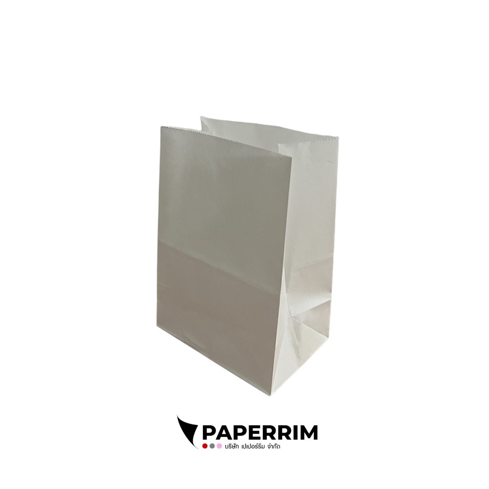 Paperrim ถุงใส่ขนม สีขาว (มีก้นตั้งได้) ขนาดกลาง หน้ากว้าง 5 x ข้างยาว 3.5 x สูง 7 นิ้ว บรรจุ 100 ใบ/แพ็ค